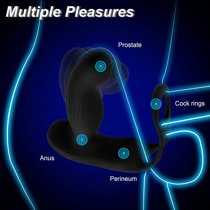 - 【4 in 1 vibration toy】- Penis Ring + Ball Ring + Prostate Massager + Anal Plug,The dual ring wraps snug around both your penis and egg which will help maintain an erection,making it longer and stronger.The perineum with texture design provide an extra-stimulating surface.Compared with other male anal plug toys,our line is thicker and longer,which can make it better and more comfortably fixed on the right position.